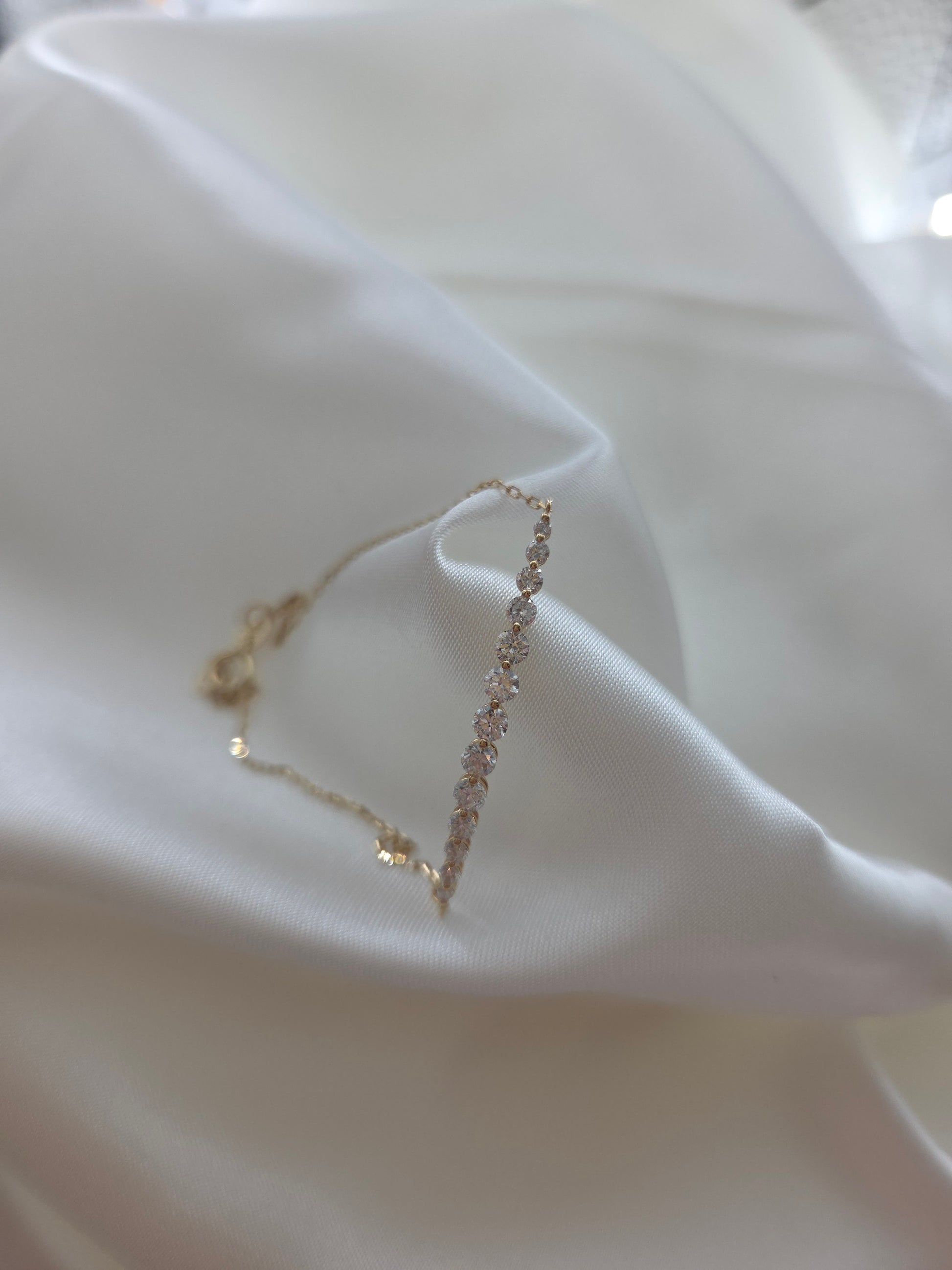 A whisper of light and luxury, the Bracelet is crafted in 18ct yellow gold and set with 0.59ct of lab grown diamonds in a graceful, minimalist line. Its fine, feminine design captures a subtle sparkle that feels effortless yet refined.