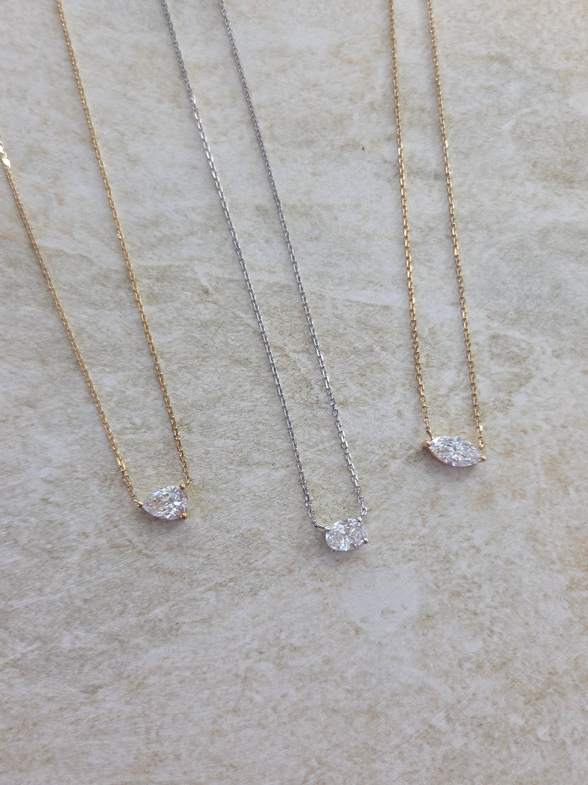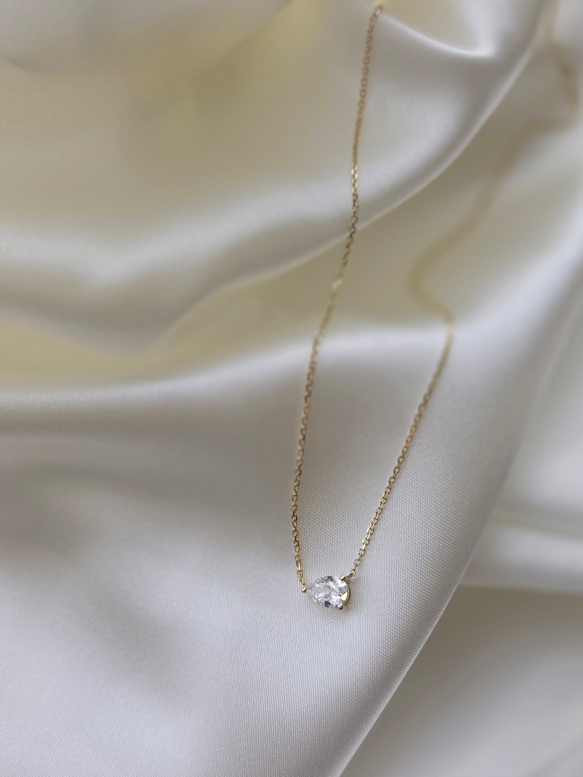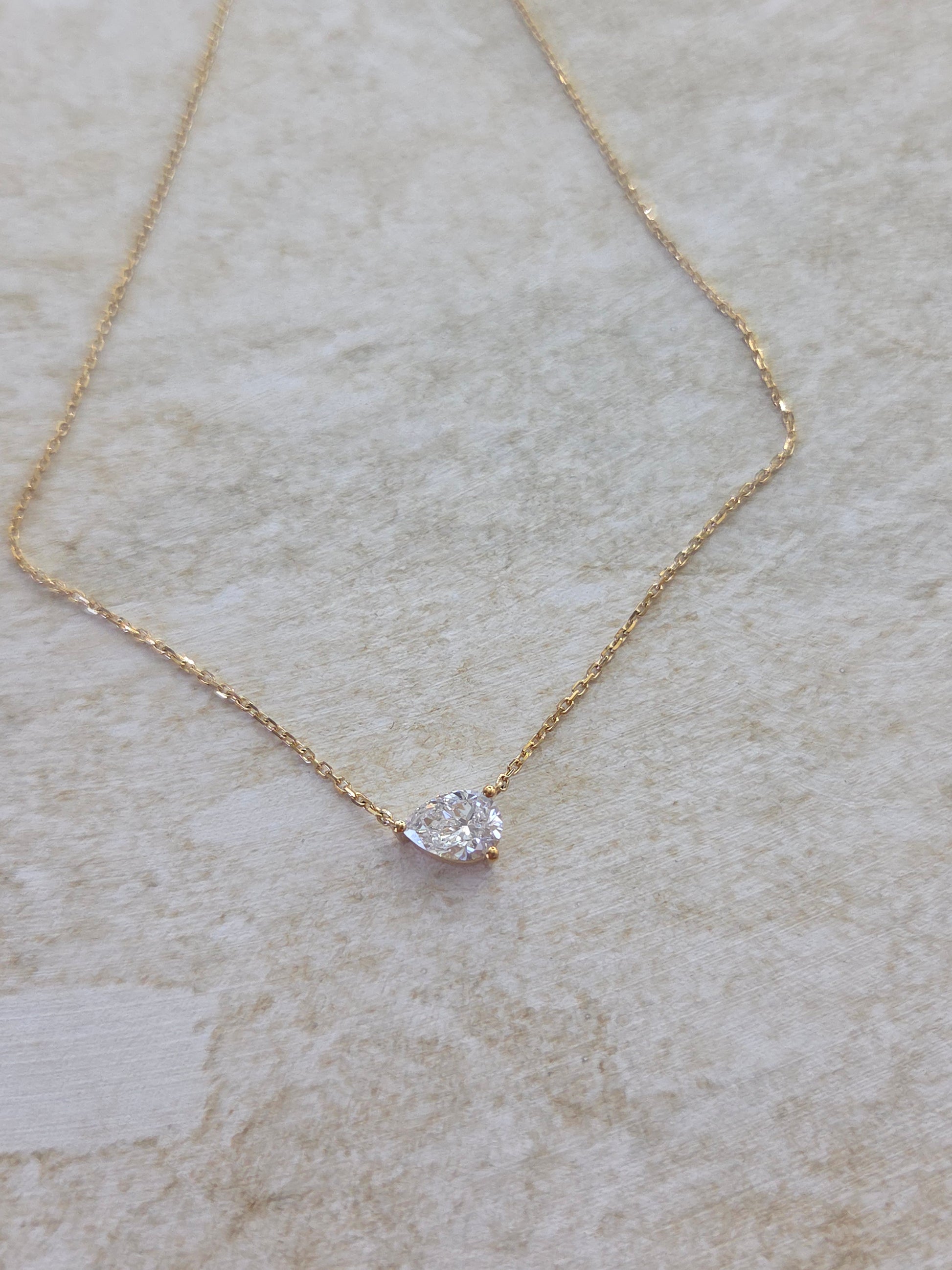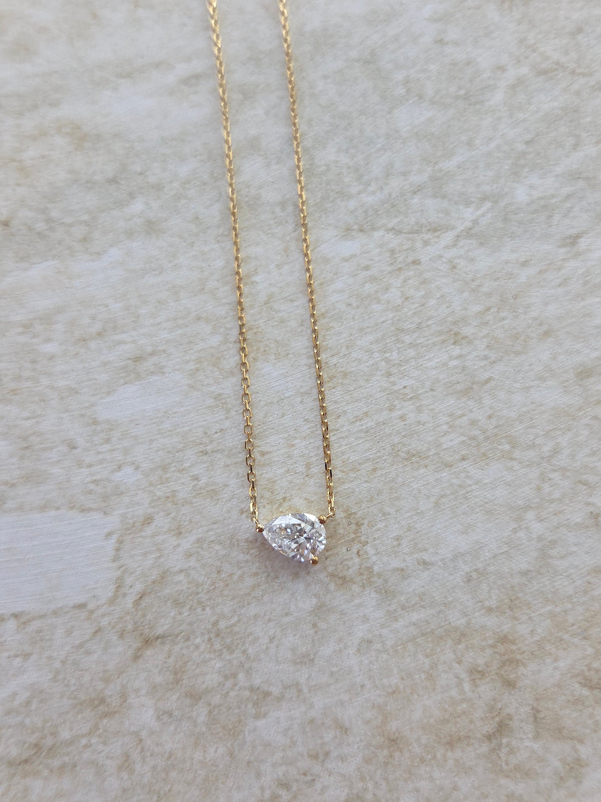 Delicate and luminous this piece captures quiet elegance in its purest form. A 0.70ct approx lab grown diamond rests gently on a fine 9ct yellow gold chain, creating a graceful floating effect that catches the light with every movement.